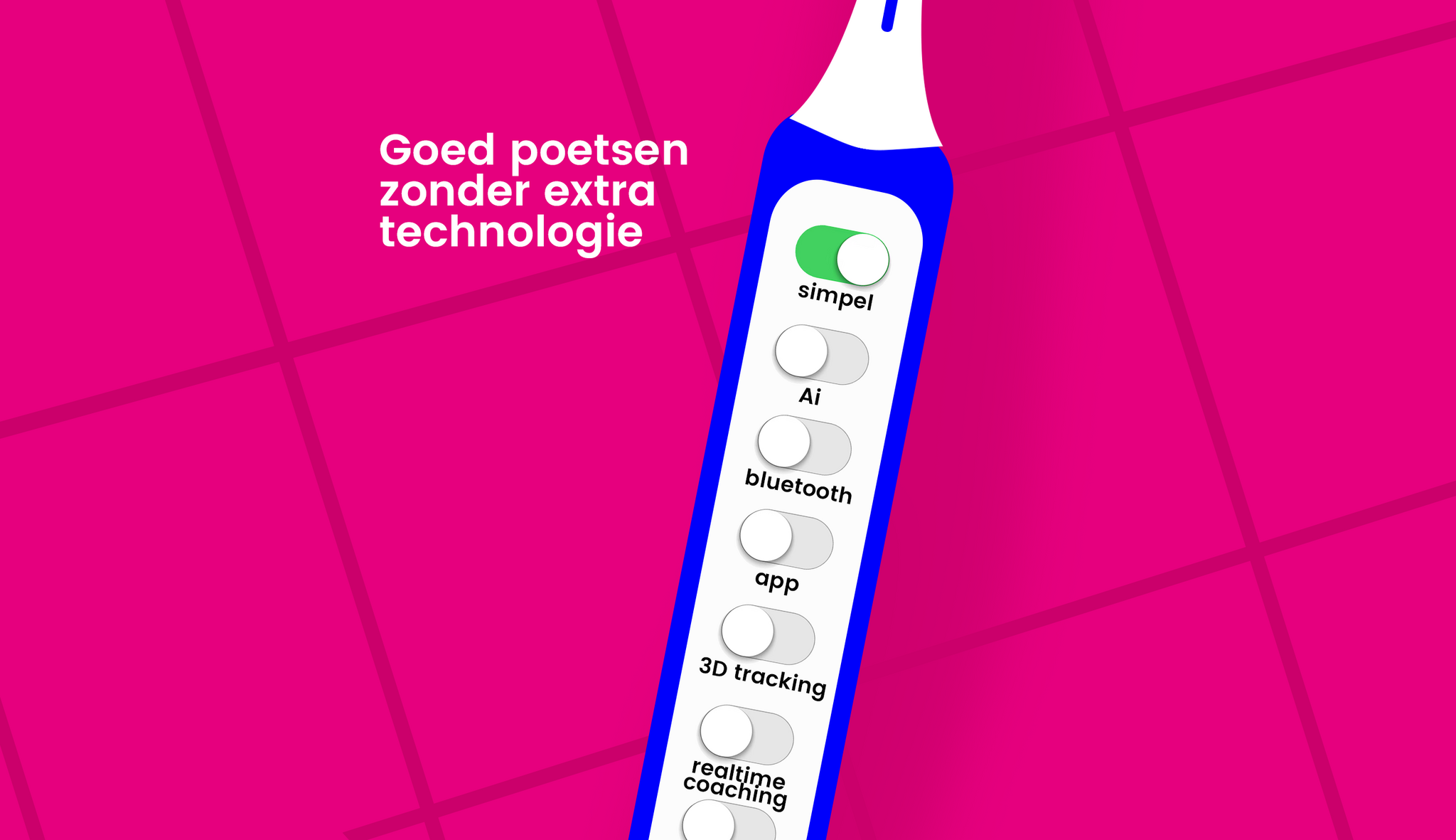 Niet iedereen wil een elektrische tandenborstel met een app, bluetooth of slimme AI-functies. Veel mensen zoeken juist een eenvoudige elektrische tandenborstel die goed poetst zonder extra technologie.