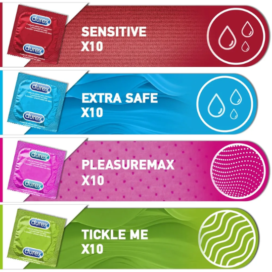 U wisselt eenvoudig tussen de verschillende soorten condooms Durex. Geen gedoe met meerdere doosjes in huis halen. Alles zit gewoon bij elkaar. Dat maakt het overzichtelijk. En eerlijk is eerlijk: het maakt het ook net wat leuker.