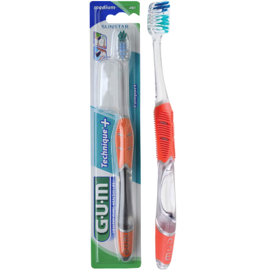 Zo kiest u met de GUM Technique+ Tandenbortel Medium Compact 493 voor ondersteuning én resultaat in één.