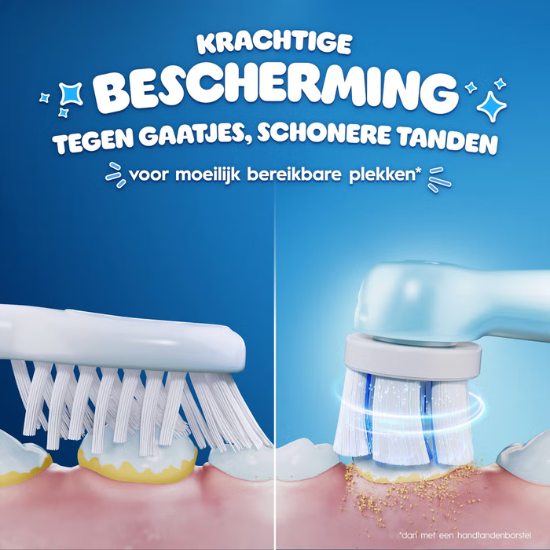 - Extra zachte borstelharen en een compacte borstelkop, afgestemd op jonge poetsers