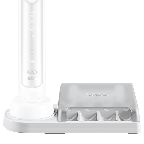 Oral-B opzetborstels makkelijk opbergen? Gebruik de speciale opzetborstel opbergunit. U kunt de unit gemakkelijk om de oplader van uw Oral-B elektrische tandenborstel schuiven, zodat het één geheel wordt.