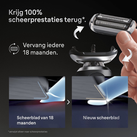 - Herstel van 100% scheerprestaties door tijdige vervanging