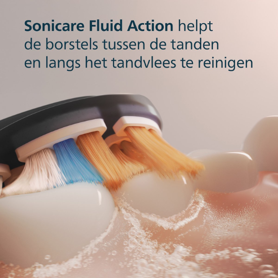 In combinatie met Sonicare-technologie, met tot wel 62.000 bewegingen per minuut, wordt tandpasta en water diep tussen uw tanden en langs het tandvlees geleid. Dat zorgt voor een merkbaar schoner resultaat bij elke poetsbeurt.
