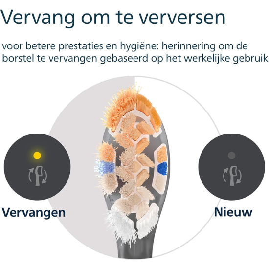 Daarnaast zorgt de ingebouwde BrushSync chip ervoor dat u precies weet wanneer het tijd is om uw borstel te vervangen. Uw tandenborstel geeft een seintje. Handig, want zo blijft uw poetsresultaat altijd op niveau.