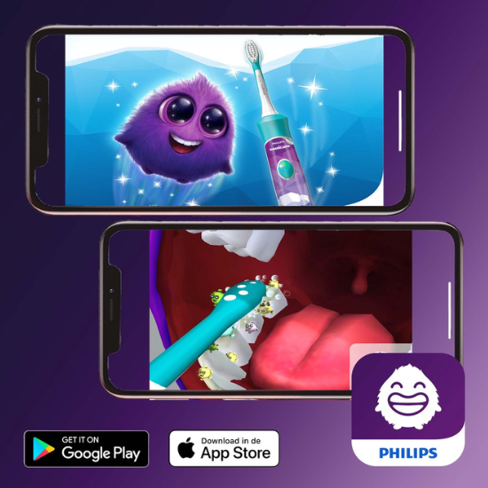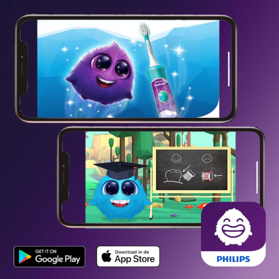 Poetsen wordt een avontuur met de Philips Sonicare KidPacer app. Deze interactieve app motiveert kinderen om alle delen van hun mond grondig te poetsen en helpt hen de aanbevolen twee minuten te bereiken. Het kleurrijke en speelse design van de app maakt tandenpoetsen leuk en leerzaam.