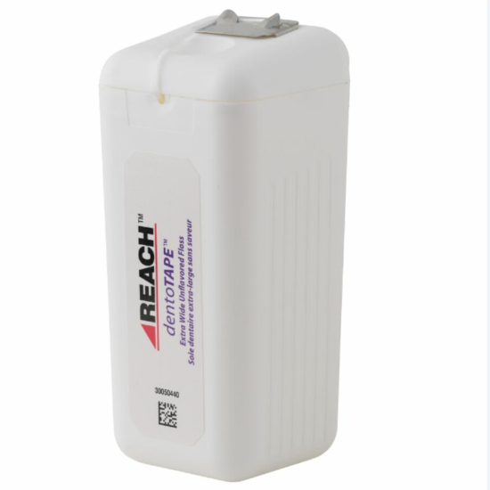De Reach DentoTape is geen gewone floss. Deze extra brede flosdraad in tapevorm biedt meer contactoppervlak dan standaard floss, wat betekent dat u in één beweging meer tandplak verwijdert. De tape is gecoat met een dun laagje was, waardoor hij soepel tussen uw tanden glijdt, zelfs bij gevoelige plekken.