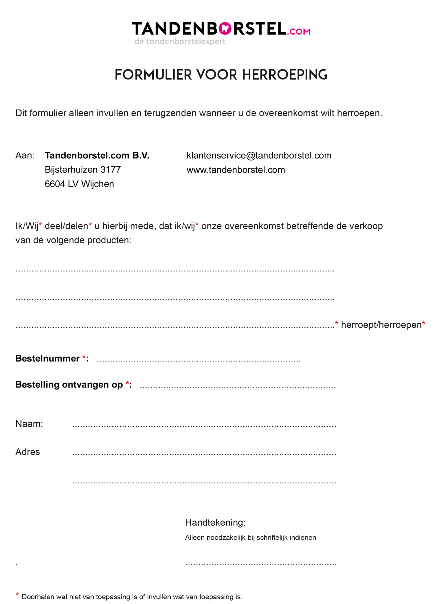 Tandenborstel.com B.V.Afd. Retouren / bestelnummer