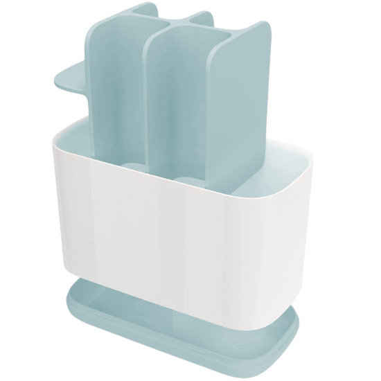 Een slimme toevoeging aan deze houder is de ventilatieopening aan de voorzijde, waardoor het bakje snel droogt na gebruik. Bovendien zorgt de uitneembare bodem en vakjes ervoor dat elk onderdeel gemakkelijk schoon te maken is, waardoor de houder een uitblinker is in gebruiksgemak en hygiëne.