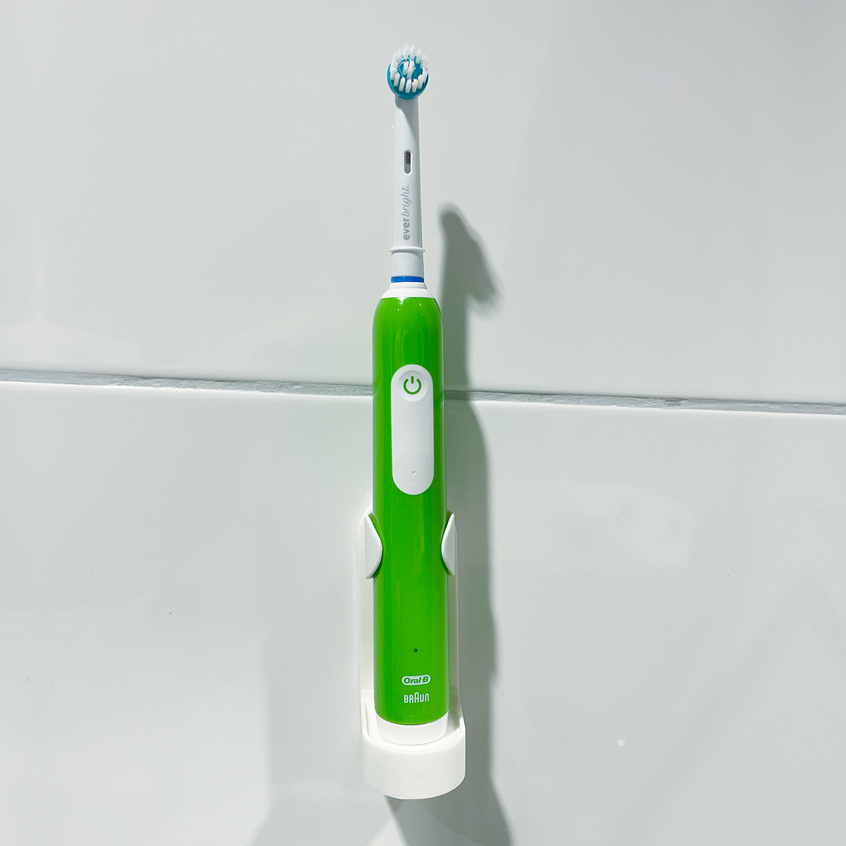 - Hygiënische opslag: de tandenborstel hangt in de houder, waardoor hij niet in contact komt met het wastafeloppervlak en altijd droog blijft, wat de groei van bacteriën voorkomt.