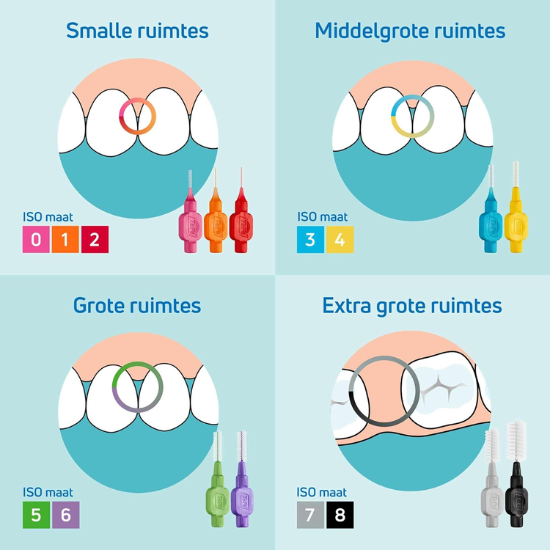 De TePe Interdentale Ragers zijn er in verschillende maten, namelijk: