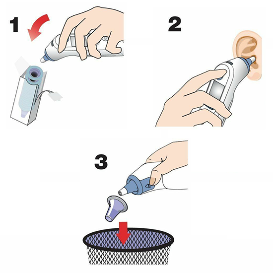 Om deze meting zo nauwkeurig mogelijk te doen heeft u elke keer een nieuwe, schone lensfilter nodig. Wanneer u de thermometer hoesjes niet vervangt, is het mogelijk dat de temperatuur niet correct gemeten wordt doordat er bijvoorbeeld vuil (zoals oorsmeer) aan kan blijven zitten.