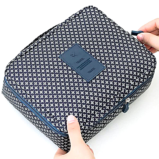 Super leuke blauwe toilettas met print. Ben jij er ook gek op als je meest gebruikte producten netjes geordend zijn. Hoe fijn is het gevoel dat je al je vertrouwde producten van thuis mee kunt nemen. Dit kan natuurlijk altijd, maar het geeft toch wel een fijner gevoel als dit in een toilettas kan. De HappyHoliday toilettas ziet er niet alleen vrolijk uit, hij heeft ook nog eens handige opbergvakken.