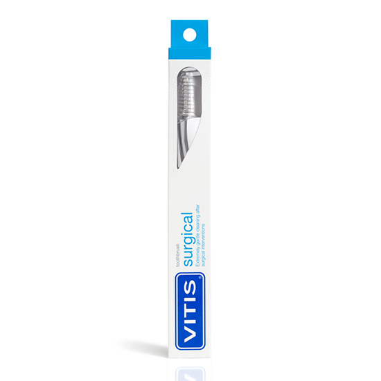 Na een chirurgische ingreep in de mond kan het zeer vervelend zijn om het gebit goed te poetsen. Toch is het zeer belangrijk om dit te blijven doen, omdat u hiermee een snelle genezing bevordert. De Vitis Surgical Tandenborstel heeft zeer zachte borstelharen om uw gebit onder deze omstandigheden goed te blijven verzorgen.